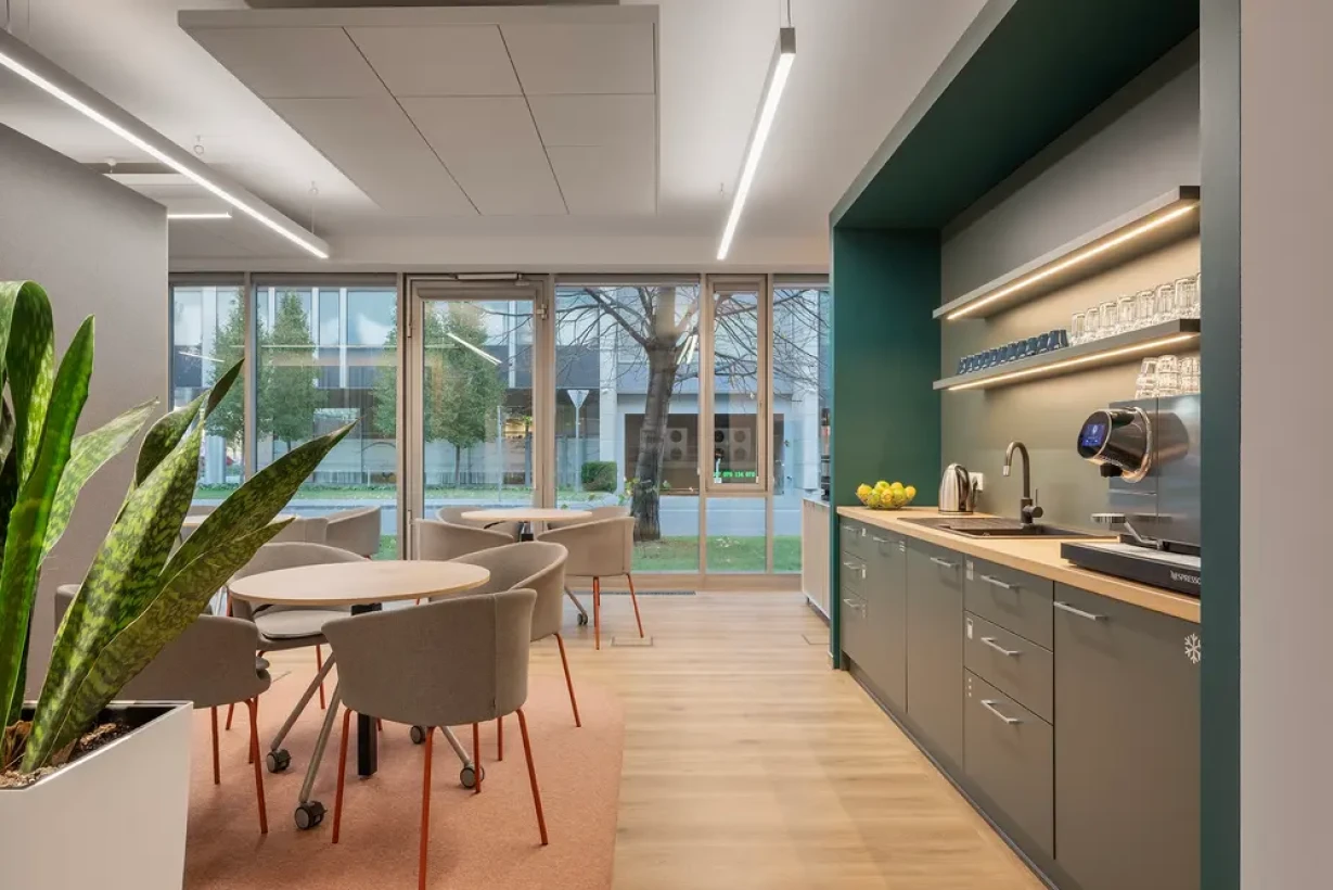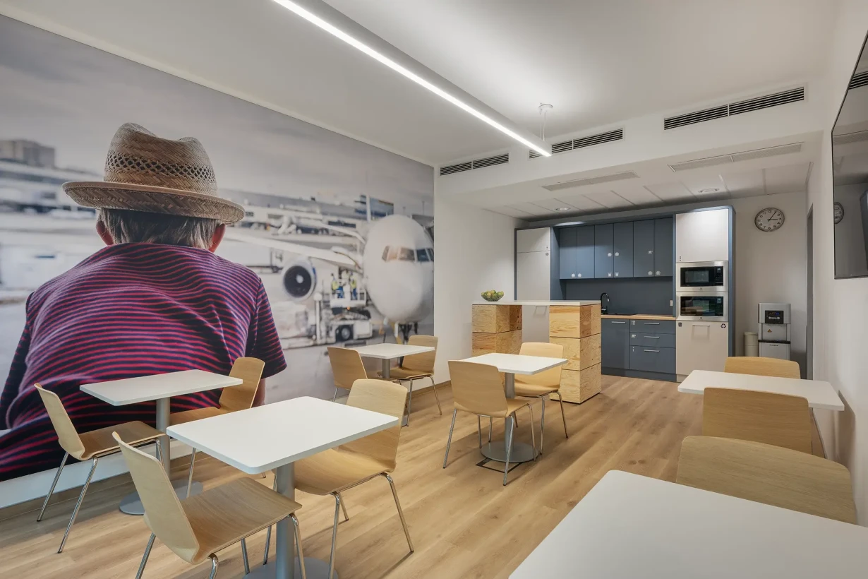 A Lufthansa Systems Hungária irodájának világításkorszerűsítése az egyik legnagyobb és legösszetettebb irodai projektünk volt, amely 4 emeleten, 5000 m²-en, közel 120 helyiségben valósult meg. A projekt során a korszerűtlenné vált T5 fénycsöves világítási rendszert teljes egészében modern, energiatakarékos LED megoldásokra cseréltük. Az irodákban direkt/indirekt (fel/le világító) függesztett LED fénysávokat, a közlekedőkben mélysugárzó LED lámpatesteket, valamint központi akkumulátoros biztonsági világítási rendszerhez illesztett LED lámpatesteket telepítettünk. A kivitelezés egyik legnagyobb szakmai kihívása az volt, hogy az épületben működő CEAG központi akkumulátoros vészvilágítási rendszerrel kompatibilis megoldást kellett kialakítanunk – a rendszerintegrációt teljes körűen, üzembiztosan valósítottuk meg. Az összesen közel 1000 darab beépített LED lámpatest nemcsak jelentős energia-megtakarítást, hanem magasabb szintű vizuális komfortot és egységes, prémium irodai világítási környezetet biztosít. A projekt szakmai színvonalát jól mutatja, hogy az iroda elindult Az Év Irodája versenyen, a Green&Smart koncepció részeként.
