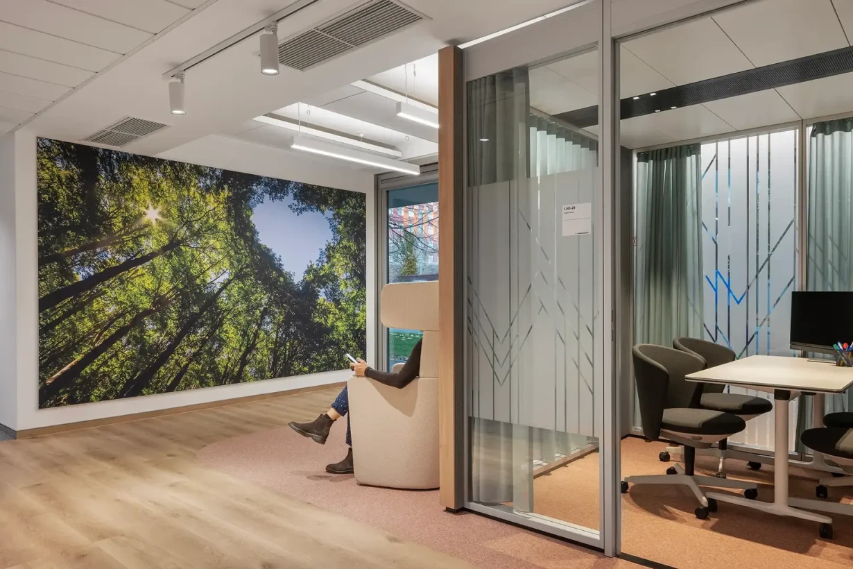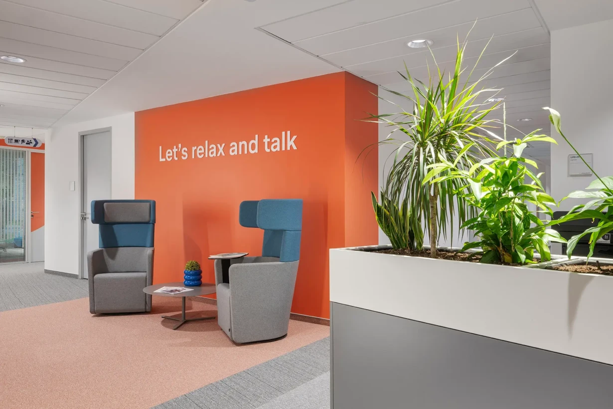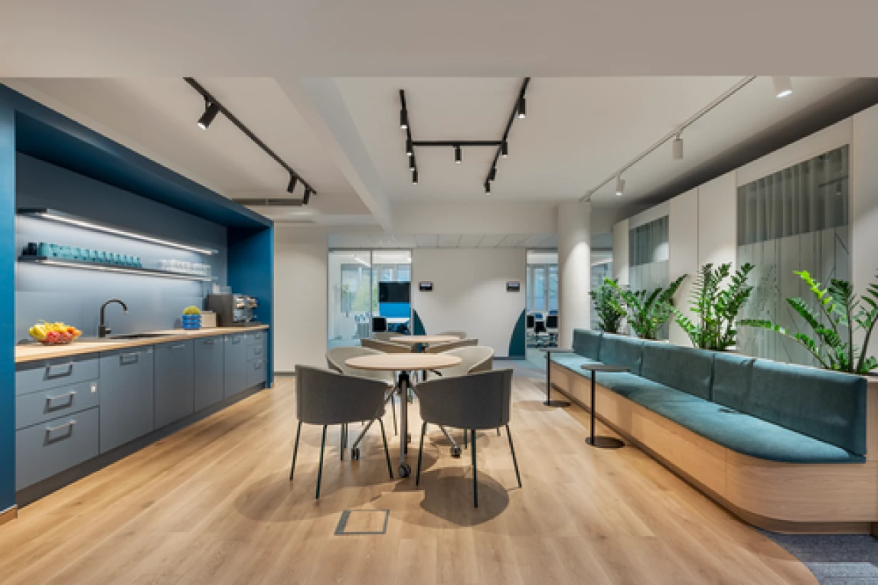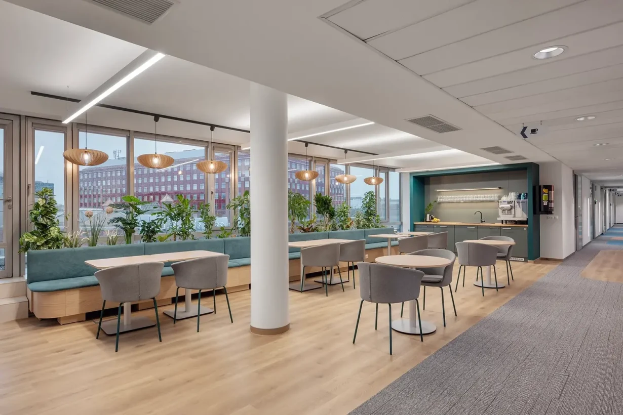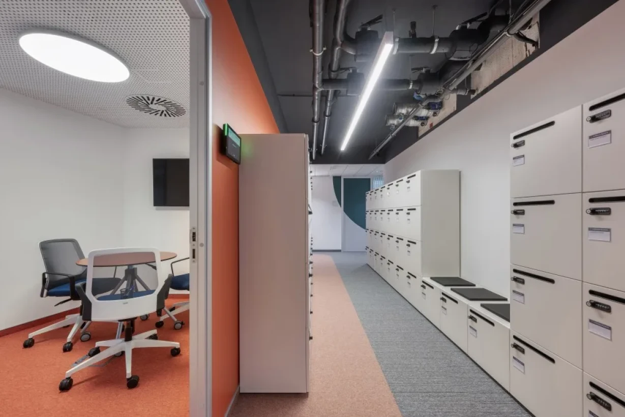 Az ügyfél kérésére a Siemens irodáiba kombinált DALi fény és jelenlétérzékelők segítségével teljesen autonóm, hagyományos kapcsoló nélküli világítási rendszert alakítottunk ki. Az összes LED lámpát, beleértve az egyedileg gyártott kör alakú LED DALi vezérelt lámpákat is a Pannon Lighting Kft szállította.
